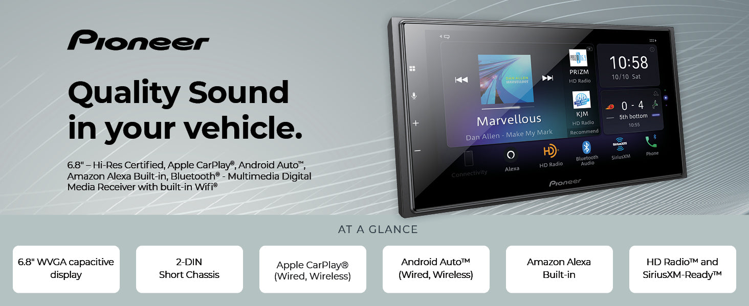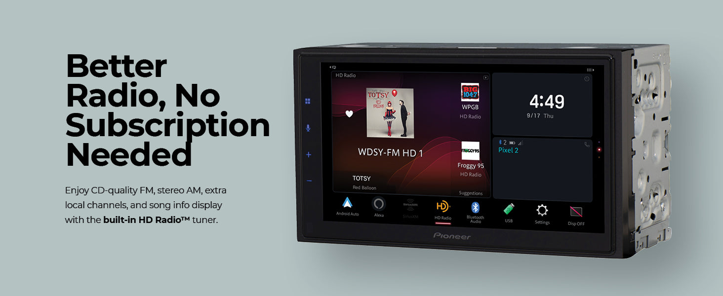 This in-dash receiver features the latest automotive connectivity solutions, including Amazon Alexa Built-in. With Alexa, users can talk to Amazon Alexa directly through this Pioneer receiver. With Alexa, you can ask to play music, hear the news, check the weather, control smart home devices*, and more. Alexa lives in the cloud, so it’s always getting smarter, adding new capabilities that are delivered to compatible devices automatically. Using Alexa with the Pioneer units is simple and hands-free – just ask, and Alexa will respond instantly. Visit www.pioneerelectronics.com/PUSA/Car/Alexa to learn more including the latest features, apps, and language support for Alexa compatible Pioneer in-dash receivers.