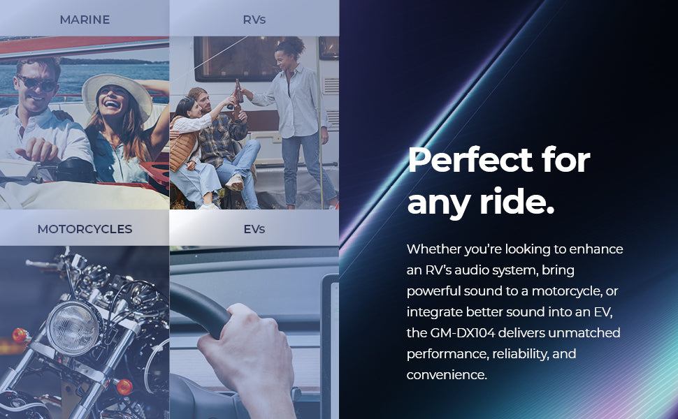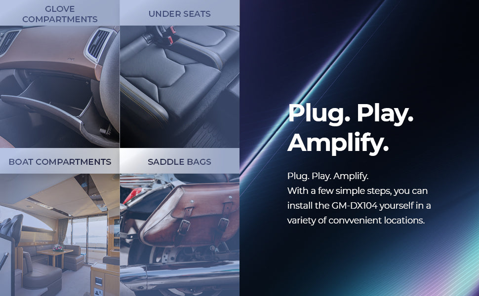 The compact design of the GM-DX104 eliminates the need for extra space, allowing for seamless installation in virtually any vehicle. Its small size ensures flexibility, making it easy to integrate into tight spaces without compromising functionality or performance. No need to worry about installation constraints—this amplifier fits wherever you need it.