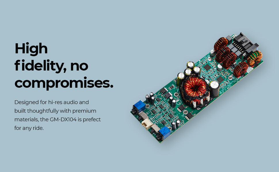 Engineered for compatibility with high voltage systems up to 16V, the GM-DX104 is an ideal solution for electric vehicles (EVs) and other advanced applications. Its low current consumption, averaging only 1.6 amps, ensures efficient operation without excessive power draw. The circuit design incorporates carefully selected components optimized to deliver reliable, stable audio performance and exceptional energy efficiency from 10.5V to 16V, making it an excellent choice for any vehicle equipped with an Auto Start/Stop feature.