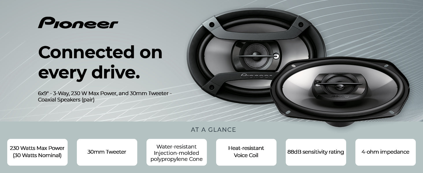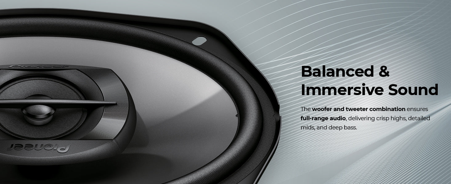 The innovative coaxial setup integrates a woofer and tweeter for balanced, immersive sound, ensuring a full range of frequencies during your drive.