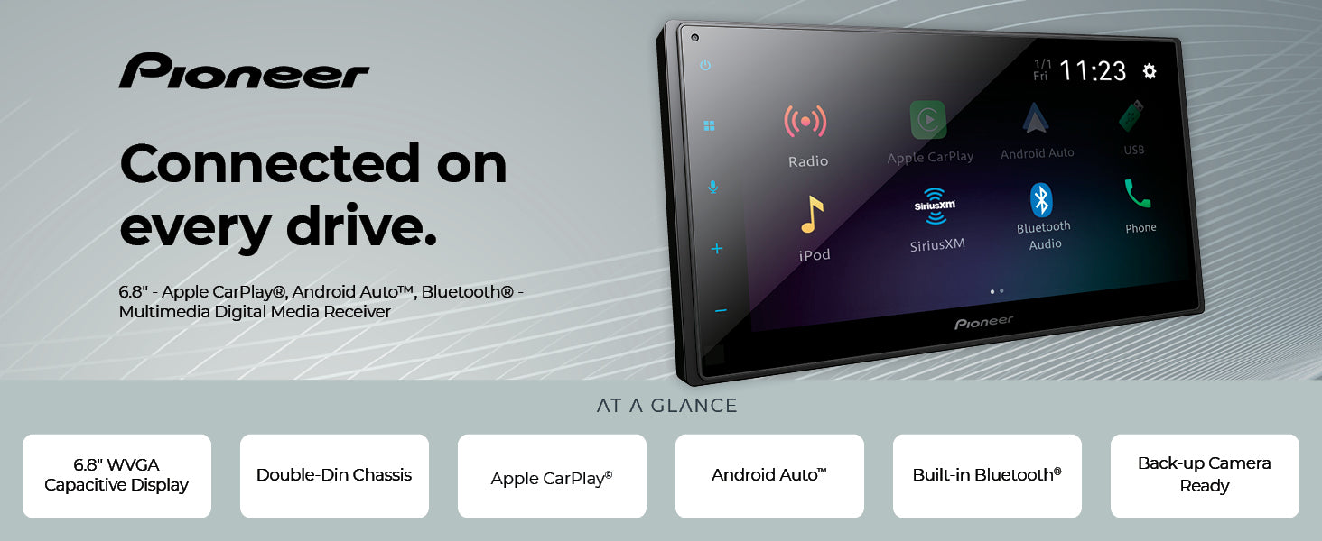 This receiver makes hands-free phone calls simple. Pioneer’s included external microphone provides crystal clear sound. Stream music, podcasts, audiobooks, and more from your compatible phone or other Bluetooth® devices.