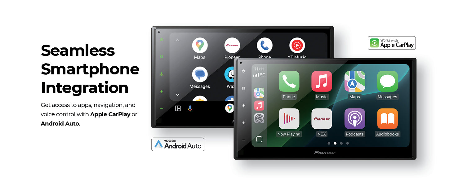 This receiver features Apple CarPlay, the smarter, safer and more fun way to use your iPhone® in the car. Apple CarPlay gives iPhone users an incredibly intuitive way to make calls, use Maps, listen to music, and verbally send and listen to messages with just a word or a touch. Apple CarPlay requires iPhone 5 device or newer with the latest version of iOS.