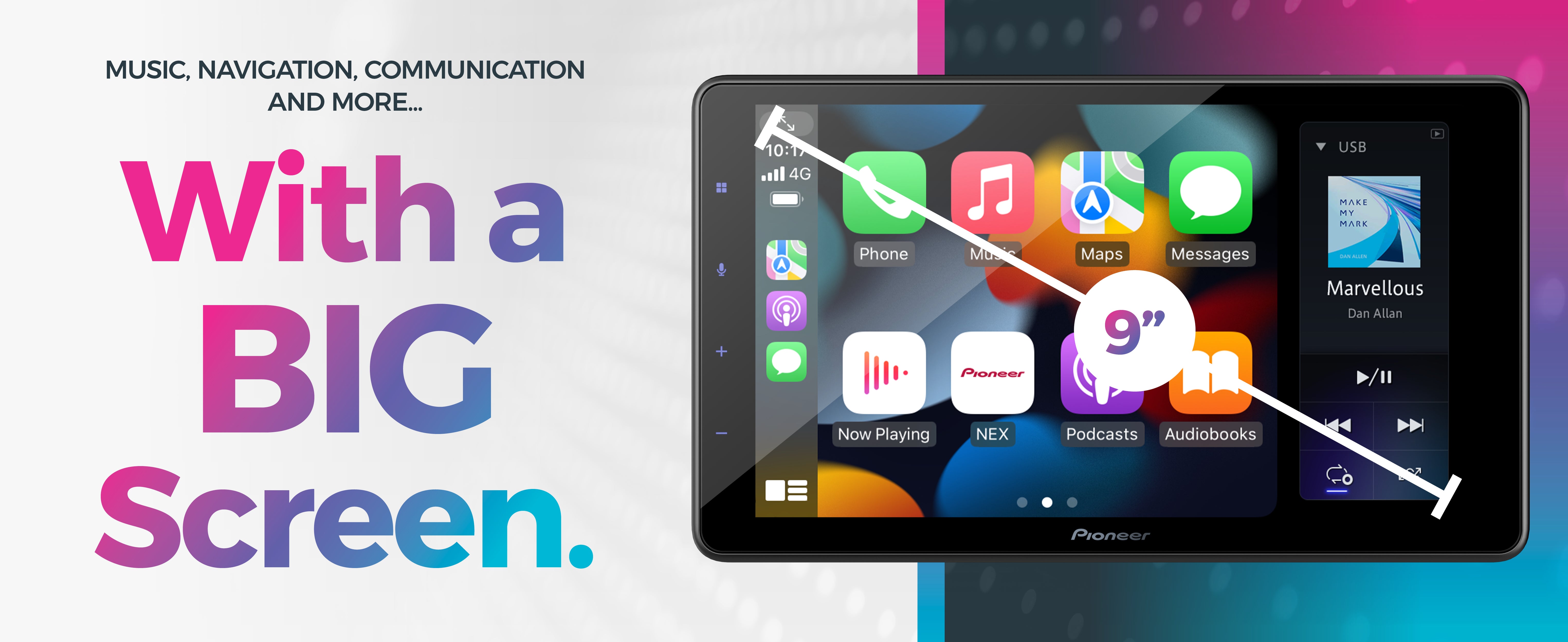 If you've ever wanted to control two apps simultaneously while using Apple CarPlay®, get excited! Pioneer is introducing a split-screen mode for select large-screen receivers, including this NEX receiver.