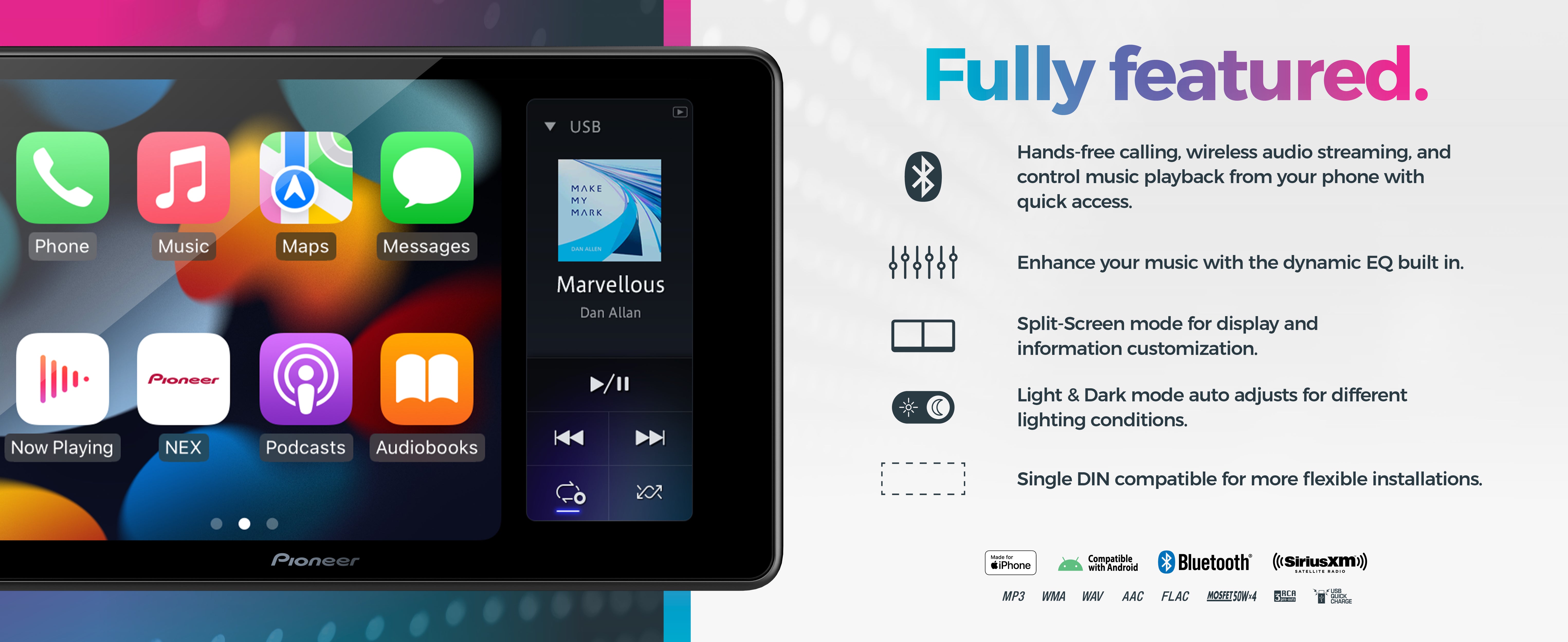 If you've ever wanted to control two apps simultaneously while using Apple CarPlay®, get excited! Pioneer is introducing a split-screen mode for select large-screen receivers, including this NEX receiver.