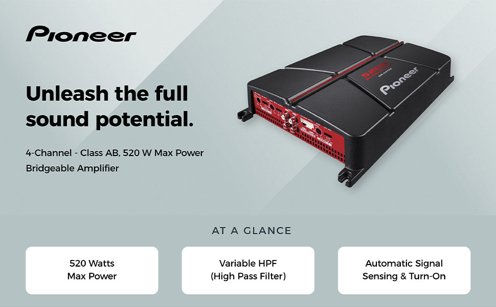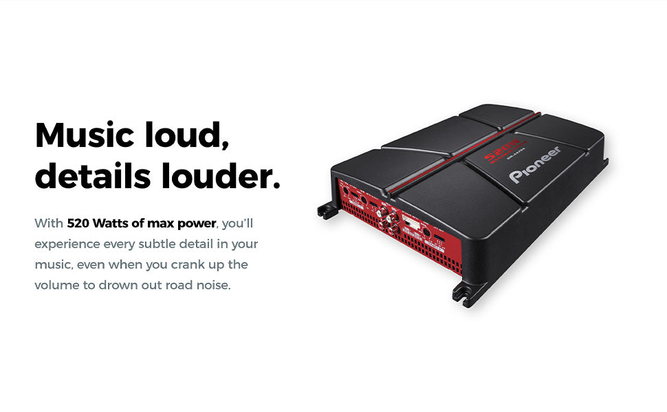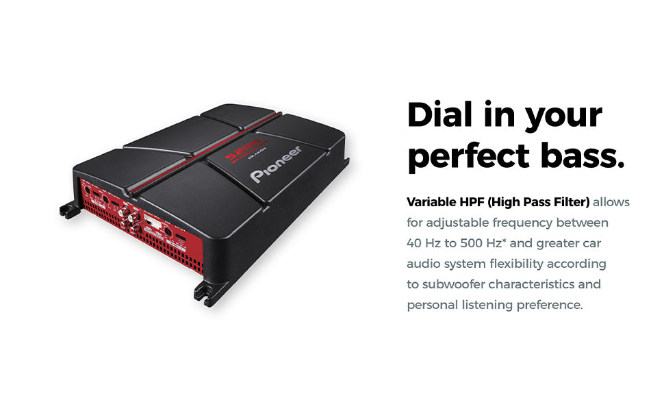 To prevent poor bass performance in demanding situations, such as heavy bass content or dynamic range music, Pioneer designed a high-quality power supply to sustain constant power requirements. This design enhances audio performance by providing a better signal-to-noise ratio, improved audio dynamics, sustained bass when needed, and, most importantly, a more enjoyable ride in your car!