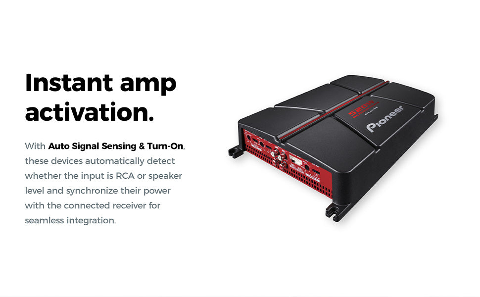 When used with an audio source such as an OEM source or a receiver without RCA output, the amplifier will activate as soon as an audio source is detected through the speaker level outputs. When using a pre-amplified source (RCA), this Pioneer amplifier will use the signal (+12Vdc) from the "Remote" input for activation.