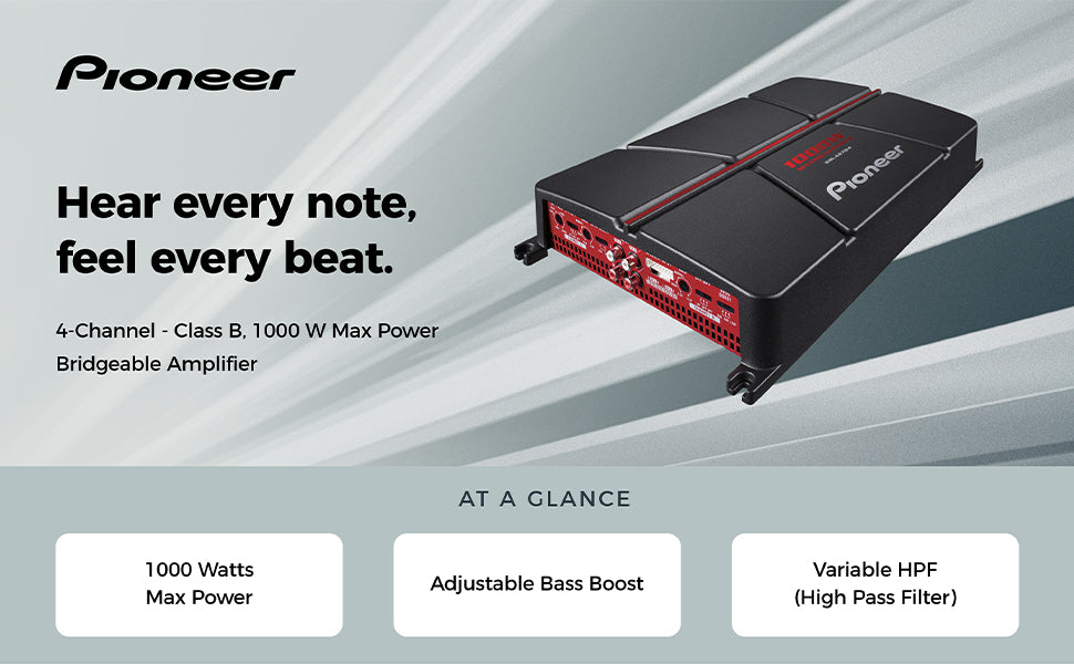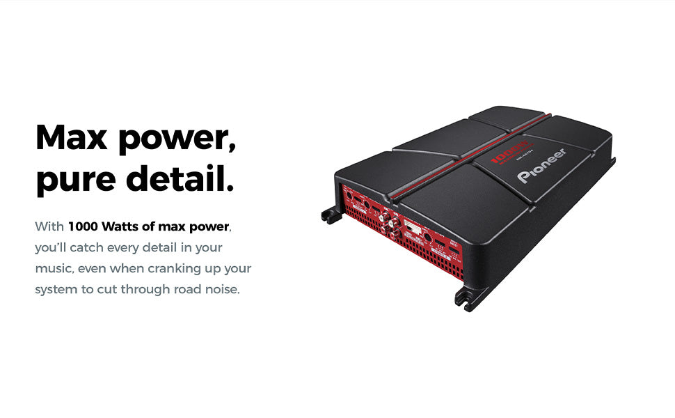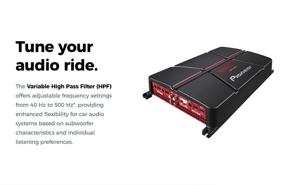 To prevent poor bass performance in demanding situations, such as heavy bass content or dynamic range music, Pioneer designed a high-quality power supply to sustain constant power requirements. This design enhances audio performance by providing a better signal-to-noise ratio, improved audio dynamics, sustained bass when needed, and, most importantly, a more enjoyable ride in your car!