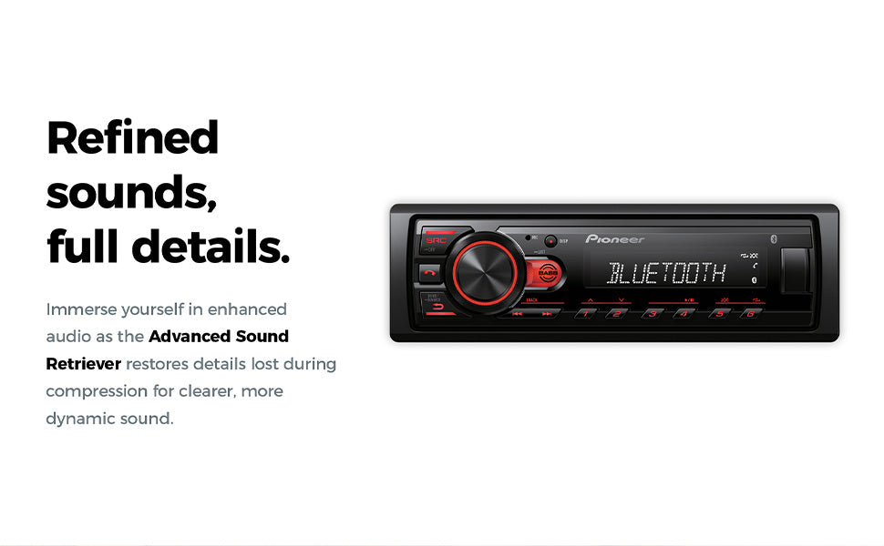 Hear more detail, warmth, and clarity that the artist originally intended, even from compressed audio files. Whether from USB or streaming services, and regardless of the level of audio compression from your lossy music sources, Pioneer's ASR enhances audio playback of compressed audio files, such as MP3s, by applying an algorithm to the audio signals. This counteracts the compression effects, providing a more detailed and natural sound.