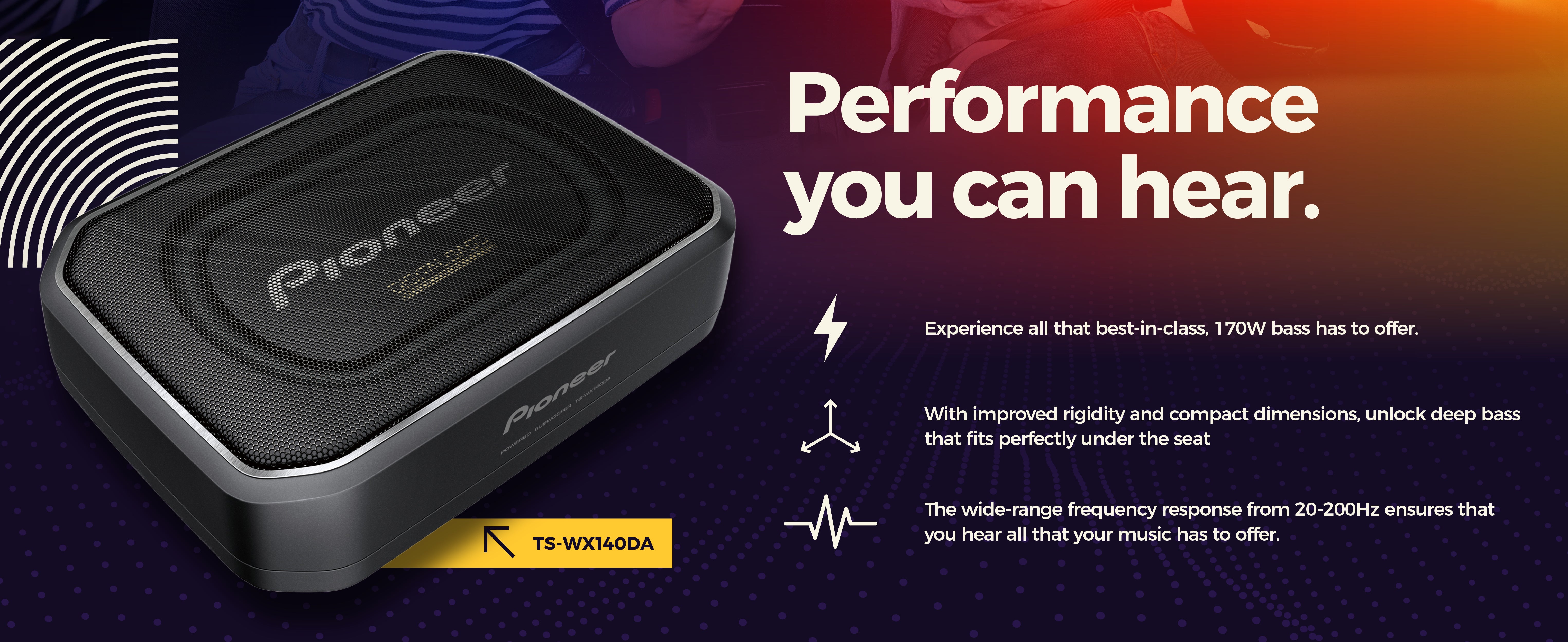 The TS-WX140DA main chassis is designed with an optimized honeycomb structure, making the shallow and compact composite body more rigid and reducing mechanical vibrations. The result is cleaner bass output with lower distortion, even at high volume levels.
